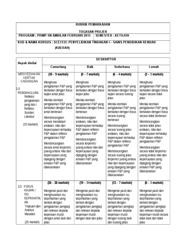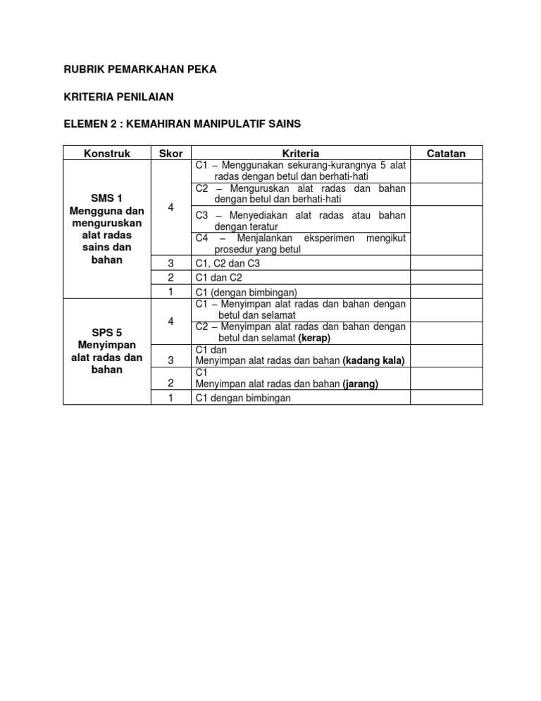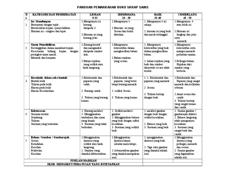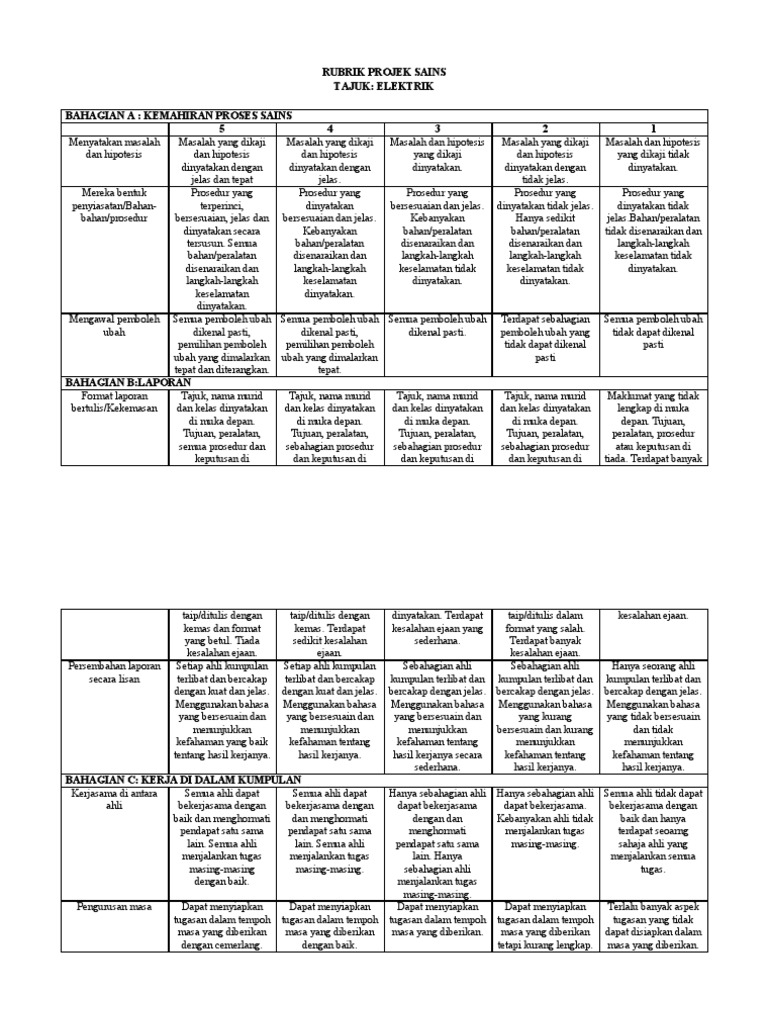 Rubrik Sains Tahun 5
